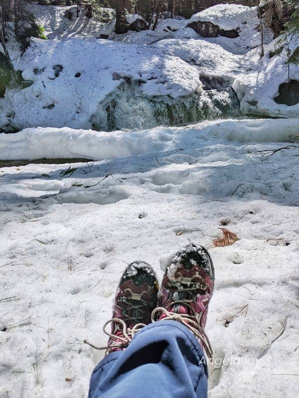 Instead of turning back, I adapted, figured it out, and kept going. When I finally reached Trap Falls, I sat on a snow-buried bench, soaking in the sun, listening to the cascading water, and letting it all sink in.